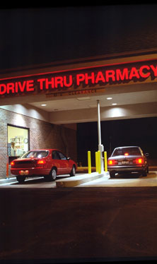 Walgreens opens its first drugstore with a drive-thru pharmacy.