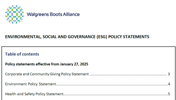 ESG Report Library View current and past Walgreens Boots Alliance Environmental, Social & Governance reports.