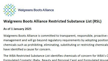 Walgreens Boots Alliance Restricted Substance List (RSL) Download options for the asset "Walgreens Boots Alliance Restricted Substance List (RSL)" DOWNLOAD (428.46 KB)