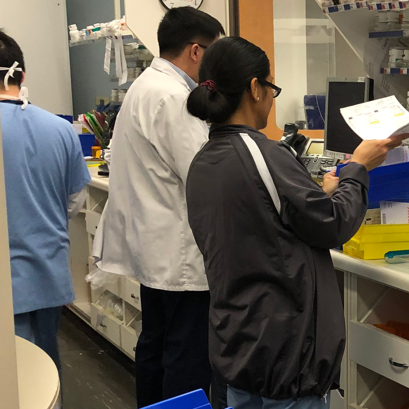 “These are small pharmacy areas, and every computer station and space was taken up,” says Chung. “But the coordination and communication between all of the team members was amazing. It wasn’t the doughnuts or drinks that we brought in, but the team spirit that made everyone able to keep going.”