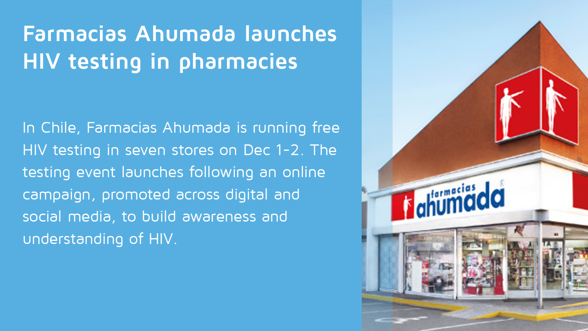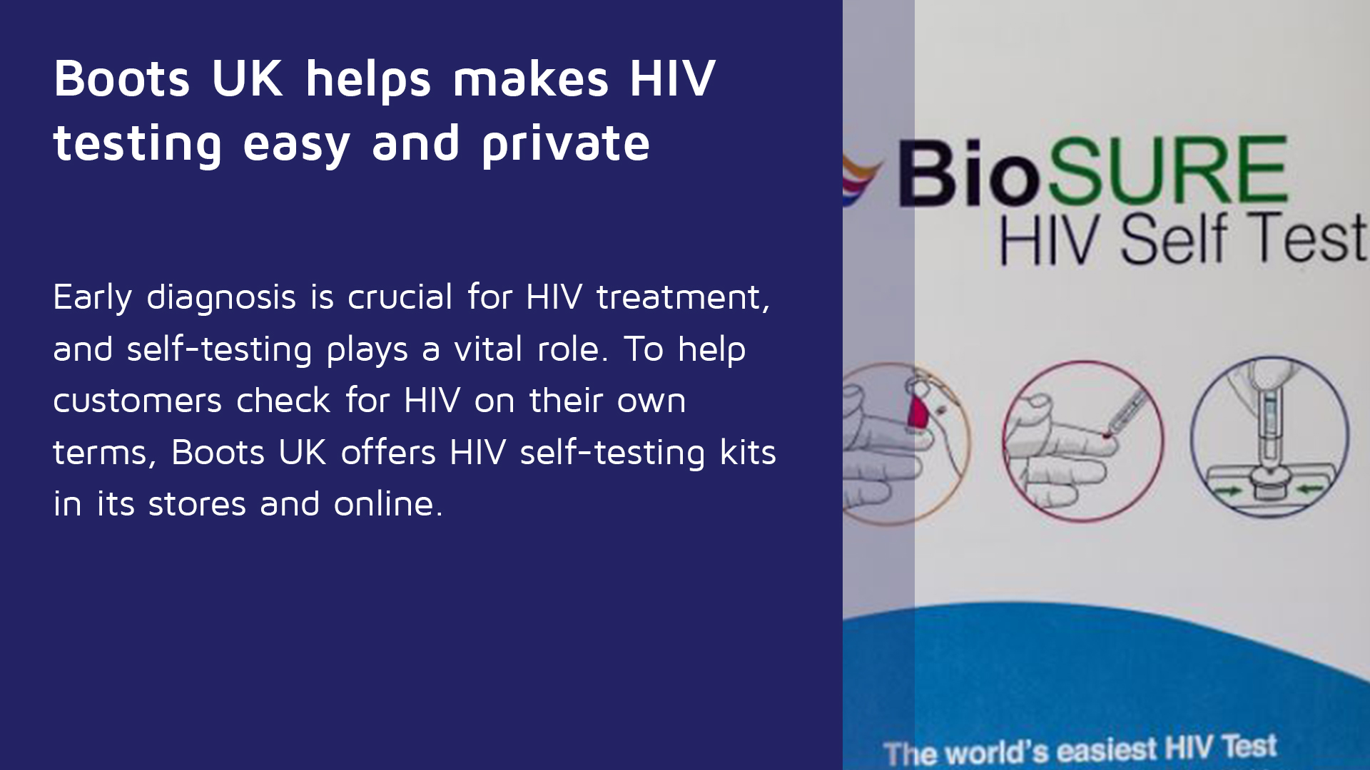 No matter where you are in the world, a pharmacy is a place that feels safe. You buy general household day-to-day things in a pharmacy, so it removes that sort of intimidating stigma or sense of “otherness” about HIV. Going to going to my local Boots and grabbing an HIV test feels entirely different than going to a sexual health clinic and asking for an HIV test. And that's what we need to do; we need to make HIV feel like any other long-term chronic condition.