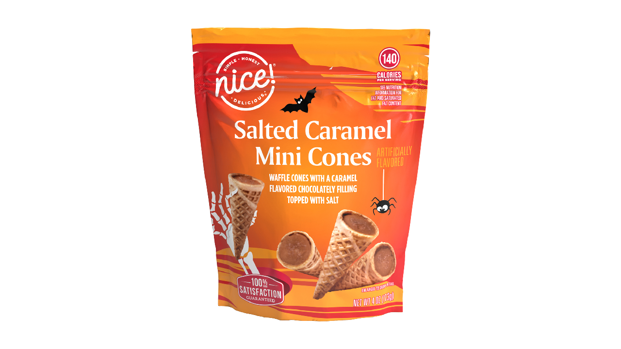 “For people who love Halloween, there are certain flavors that resonate,” says Shields. “Candy Corn is a treasured fall treat, Pumpkin Spice is another one people crave, and we’re seeing more interest in Salted Caramel as well.” Get your fill of the tastes of fall with both classic and gummy Candy Corn, Hot Cocoa melts in Pumpkin Spice and Salted Caramel flavors, or try the hit Mini Cone snacks in Salted Caramel and Cinnamon. Shop all Nice! owned brand candy here.