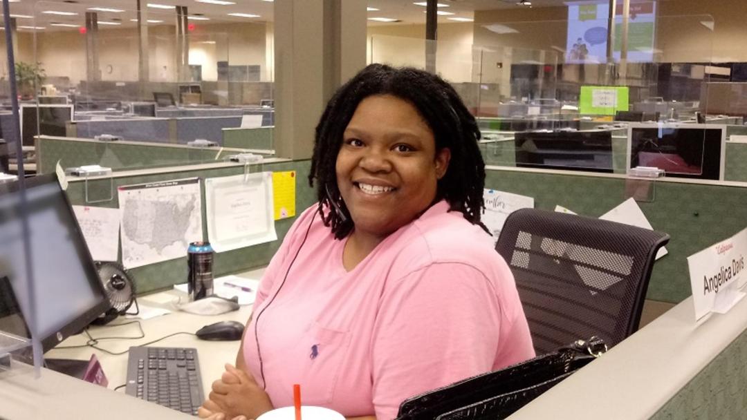 Angelica Davis, pharmacy technician at Walgreens’ Centralized Services location in Muscle Shoals, Ala., assists patients in underserved communities across the country in booking appointments for COVID-19 vaccines.