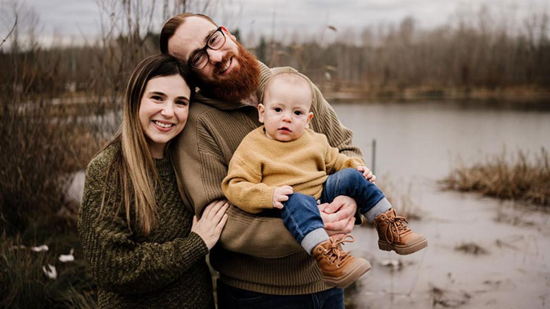 Alana Schreiber pictured with her partner Dominic, who is holding their son Sawyer. Photo by Lana Sky Photography.