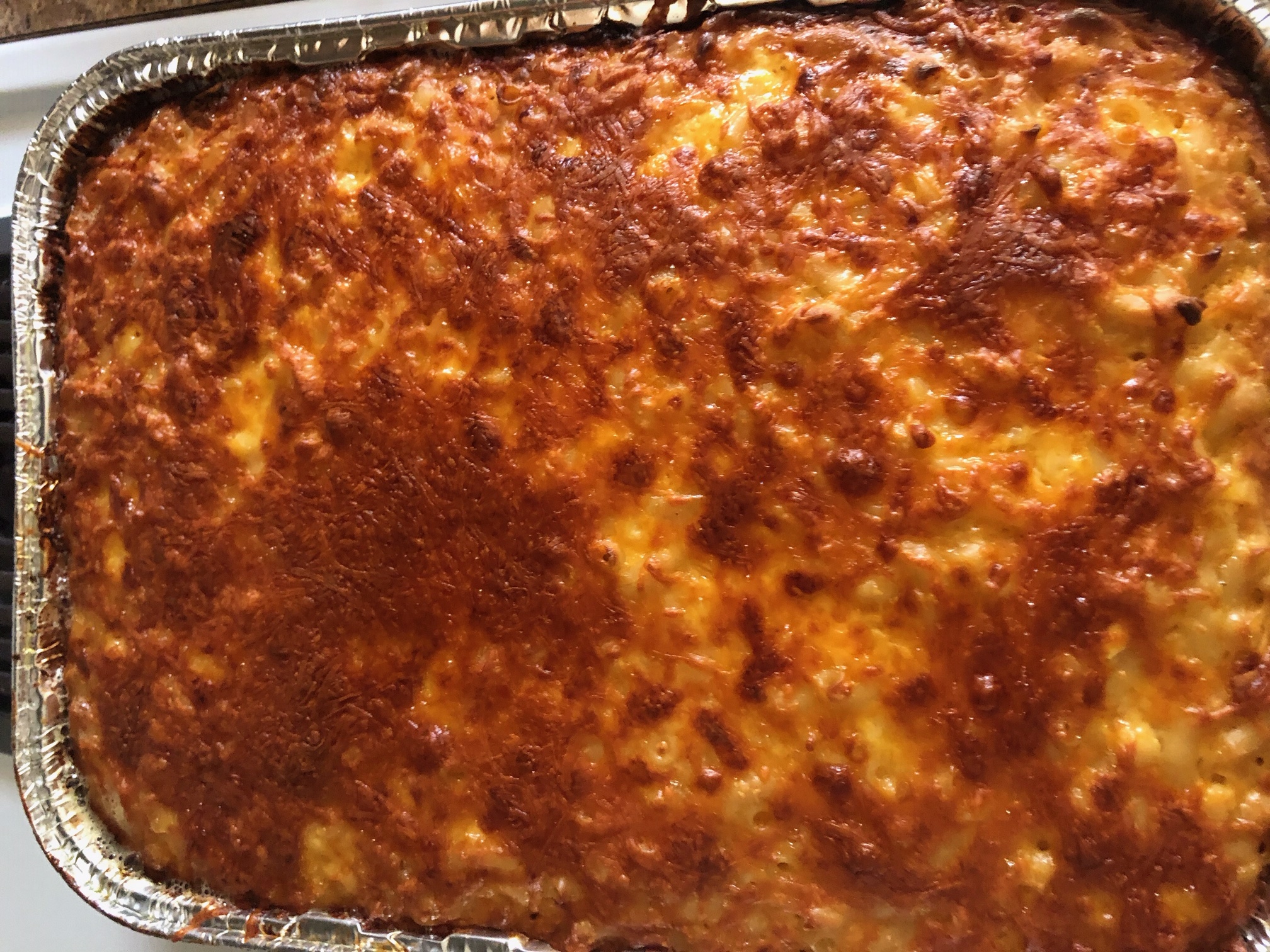 A pan of Shakir’s famous mac and cheese, straight from the oven.