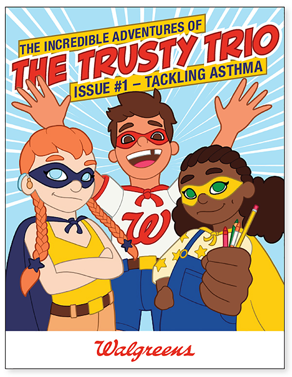 At the pilot site, the sheets went over so well that Horan partnered with the Walgreens creative teams and vendors to develop an 8-page activity book, with “superhero” characters who could help kids get more comfortable with their asthma. These booklets will be available to patients at the Chicago health equity locations, and further versions are being explored for other chronic childhood conditions such as type 1 diabetes.