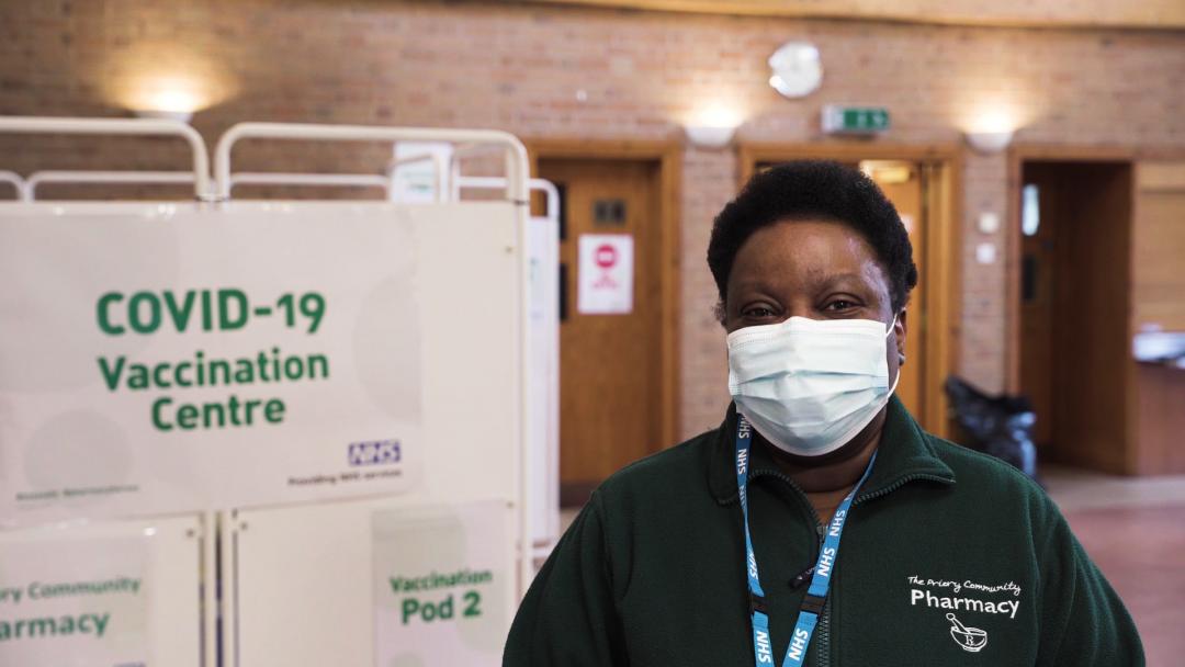 Even the face mask can’t hide Olutayo Arikawe's beaming smile as she opens the doors to the church hall. She's just taken a delivery of the first batch of AstraZeneca vaccine in readiness for a COVID-19 clinic serving her community in Dudley, England.