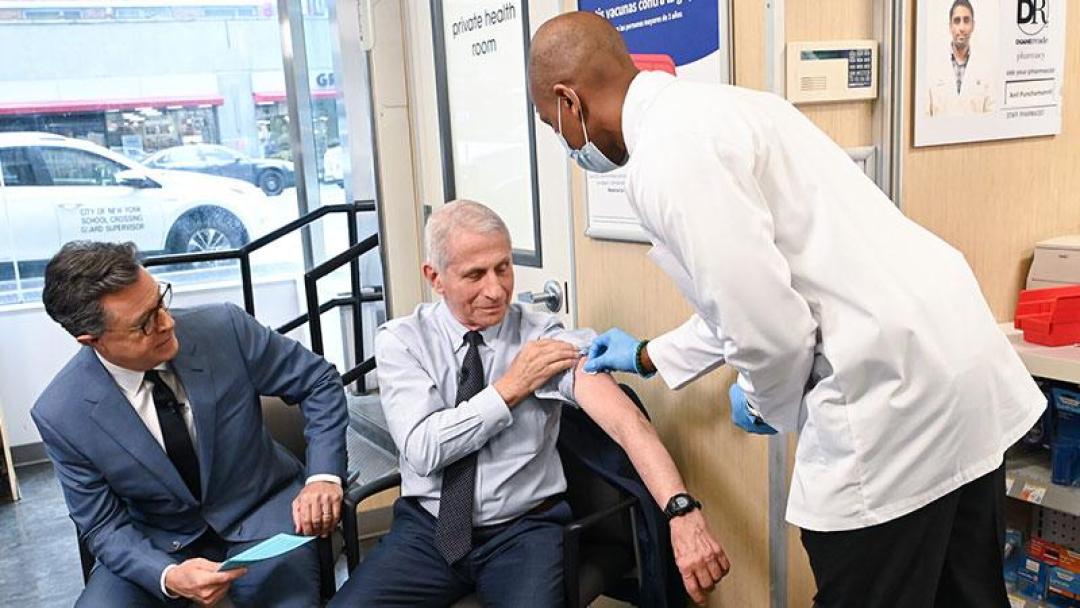 New York City-based pharmacy manager Jamal Downer says he’s vaccinated a lot of high-profile people against COVID-19. So when Stephen Colbert brought Dr. Anthony Fauci to Walgreens for a COVID-19 booster shot, Downer says he wasn’t nervous at all.