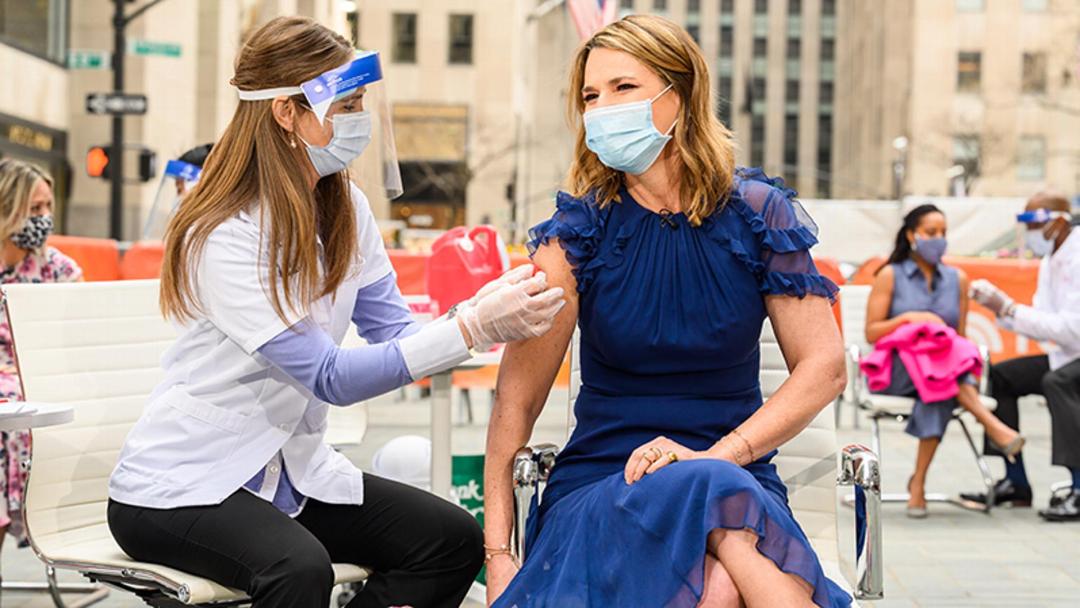 Walgreens pharmacist Kelly Kreider vaccinates anchor Savannah Guthrie live on TODAY.