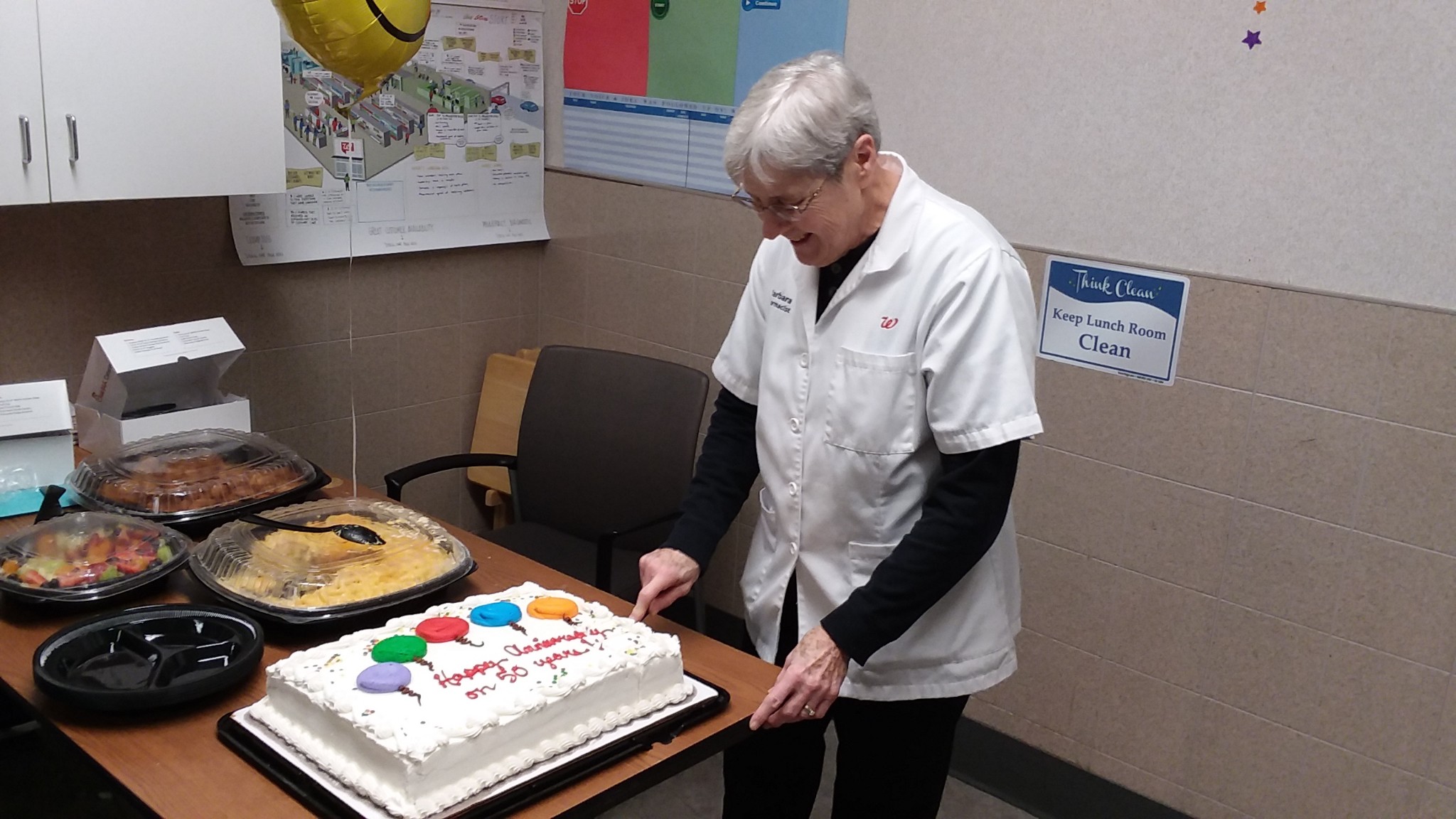 Fjordbak spent about 30 years at Walgreens as a pharmacy manager, and now works as a staff pharmacist on the evening shift at store #5077 in Iowa City, Iowa, where she has spent most of her career.