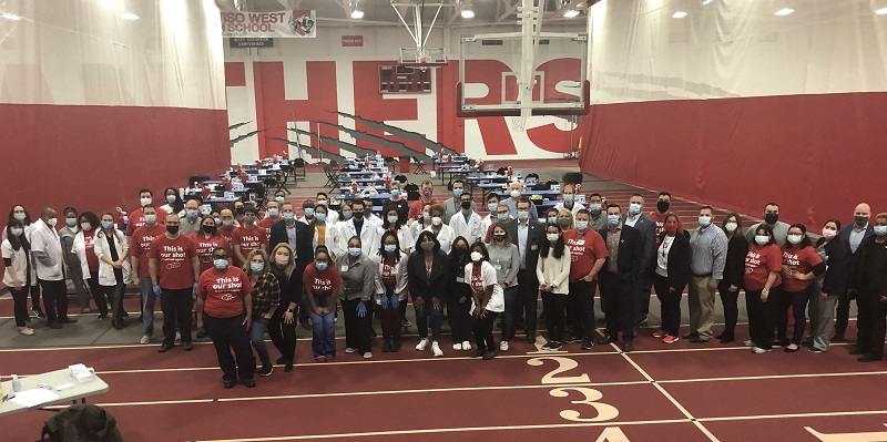 Area team members at the vaccination clinic held at Proviso West High School in Hillside, Illinois.