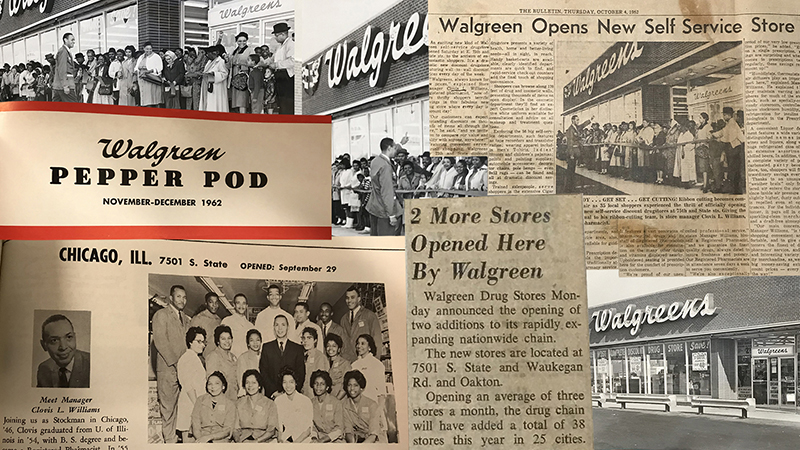 Photos celebrating the opening of the Walgreens store at 7501 S. State St. were shared with the Chicago Daily News, The Bulletin and published in Pepper Pod, a magazine for team members that later became Walgreen World. Oliver Butler is pictured back row, center, in the staff photo.