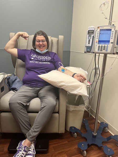 There is no cure for sarcoidosis, but as Vargas says, there is “hope for remission.” In some cases, the disease goes away on its own. In others, the disease may not progress clinically, but patients will still suffer from some symptoms that challenge their quality of life. The remaining third of those diagnosed will require long-term treatment. Currently, Vargas takes a weekly drug usually taken for inflammation in cancer patients and receives a specialty infusion drug at the hospital every six weeks. She continues to see her neurologist for testing and has begun to use a walker, but cites improvements in both her vision and ability to walk.