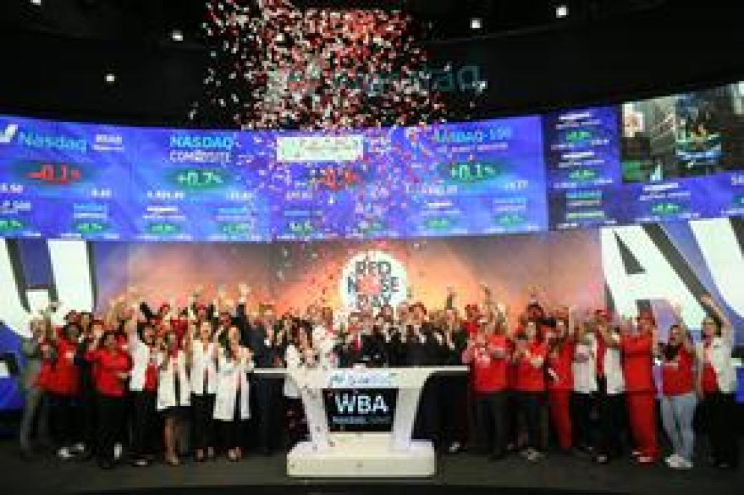 DEERFIELD, Ill. (BUSINESS WIRE), May 26, 2016 - Walgreens Boots Alliance, Inc. (Nasdaq: WBA), the first global pharmacy-led, health and wellbeing enterprise, rang the Opening Bell this morning at the Nasdaq Stock Market in celebration of Walgreens participation in Red Nose Day. Walgreens, one of the nation's largest drugstore chains, is included in the Retail Pharmacy USA Division of Walgreens Boots Alliance.