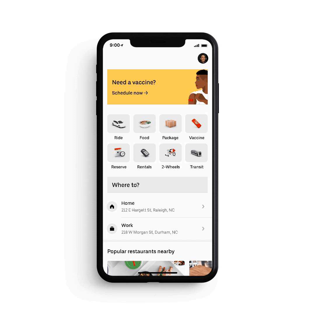 Beginning today, Uber users will see a new “Vaccine” option in their Uber app and can choose to schedule an appointment at Walgreens. After adding a zip code and selecting from the available appointment times, users will have the option to reserve a ride to the appointment by scheduling a pickup time and location. Before the appointment, a push notification will remind users of their upcoming ride to their vaccination appointment.